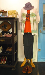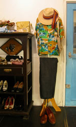 ジャマイカ製 アロハ・シャツ(ブラウン×グリーン×ブルー×赤)