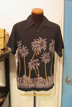 椰子柄アロハ・シャツ(黒×椰子の実ボタン)