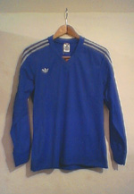 西ドイツ製 80's adidasポロシャツ(白×ネイビー幾何学プリント)