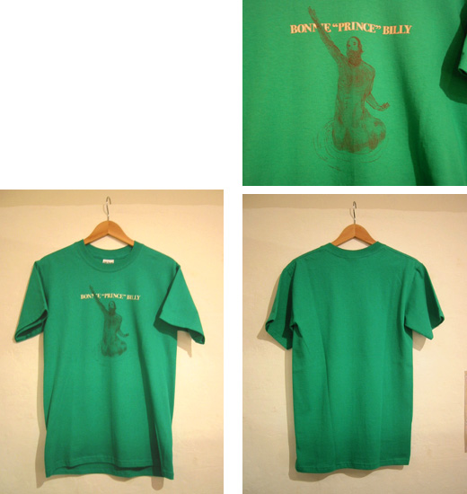 パレス・ブラザーズ、パレス、パレス・ソングス──そして、現在はボニー'プリンス'ビリーとして活動中のウィル・オールダムの、来日公演時のツアーTシャツ。ヘビーウェイトのしっかりしたコットン地で深いグリーンにキリスト様というかケンタウロスのようなウィルが水から出てくる姿がプリントされています。アメリカサイズのSで男の子のS〜Mになります。